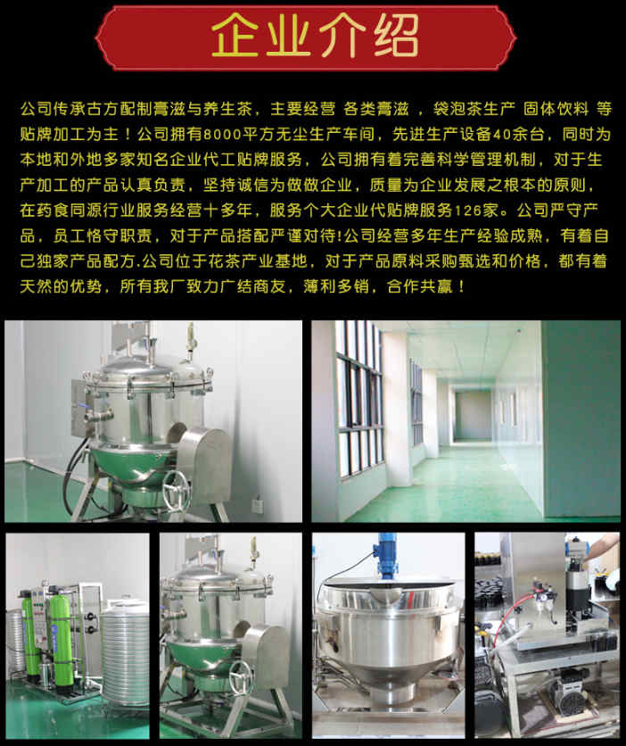 OEM代加工方案: 1、用您自己的品牌,我们包工包料给您贴牌生产; 2、根据您提供的配方来加工定制; 3、按您提供的样品来加工定制; 4、公司可自己提供原料,我们来为您代工生产; 5、可用您的外包装盒,内在产品我来完成; 6、您可以用我公司品牌定制独立的外包装盒,作为您独自销售的产品。 本公司OEM贴牌代加工的特点与实力: 1、产品设施,有多家厂房,可以达到客户不同需求; 2、原料选自信赖厂家,并且有相应的生产资质检测报告; 3、检验仪器,完成产品常规及出厂检验要求,根据客户要求,可帮忙第三方代送检; 4、价格合理,完成客户不同定价、定量需求,诚信经营; 5、证件齐备,完成客户市场拓展工作,让您放心的销售; 6、一对一客户服务,合作交流顺畅,一站式的服务,为您节约宝贵时间。