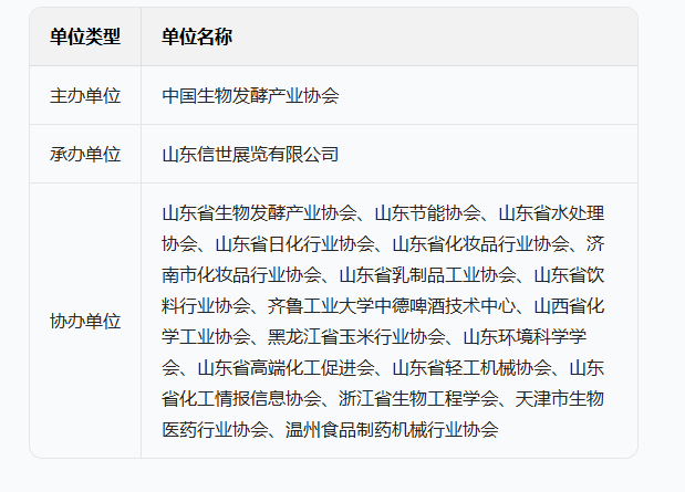 展会名称:2026 第 16 届国际生物发酵产品与技术装备展览会(济南),同期举办玉米及淀粉深加工、生物医药、合成生物与智能制造、化学试剂、智慧实验室建设、洁净技术、精酿啤酒、精细化工 / 技术装备 / 泵阀等主题相关活动。