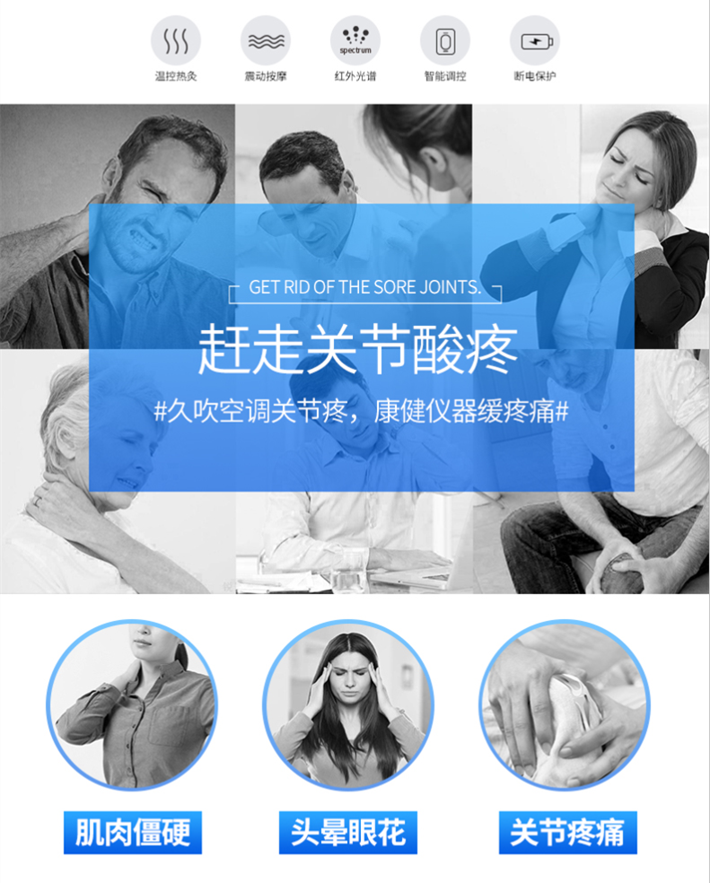 气压按摩、微电流理疗、热敷、红光理疗多功能关节理疗仪