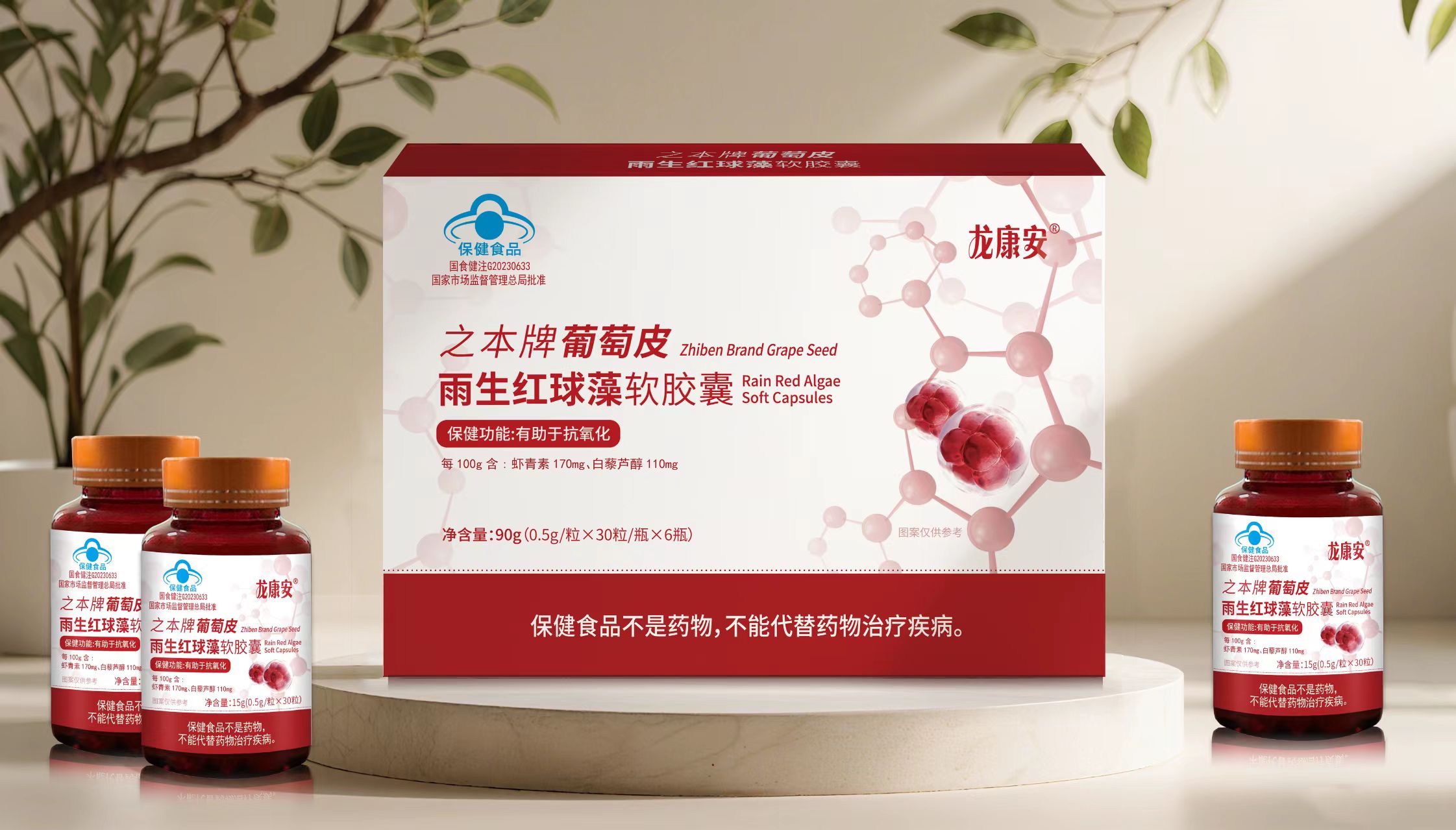 【产品名称】:之本牌葡萄皮雨生红球藻软胶囊