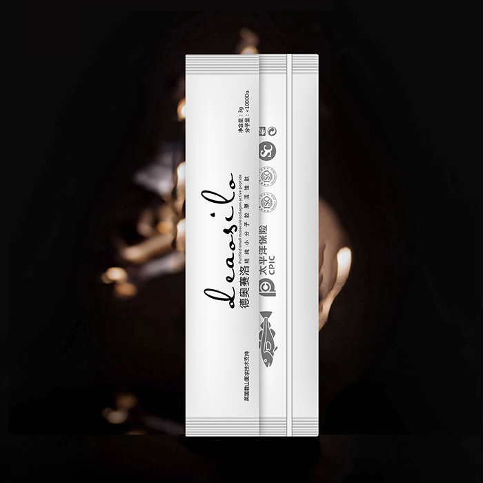 原料取自深海鱼鱼皮,运用高精尖提取工艺,分子量小,活性稳定,易吸收,转化效果好,安全无副作用,可作为长期膳食营养补充主要成分:深海鱼胶原蛋白肽粉。